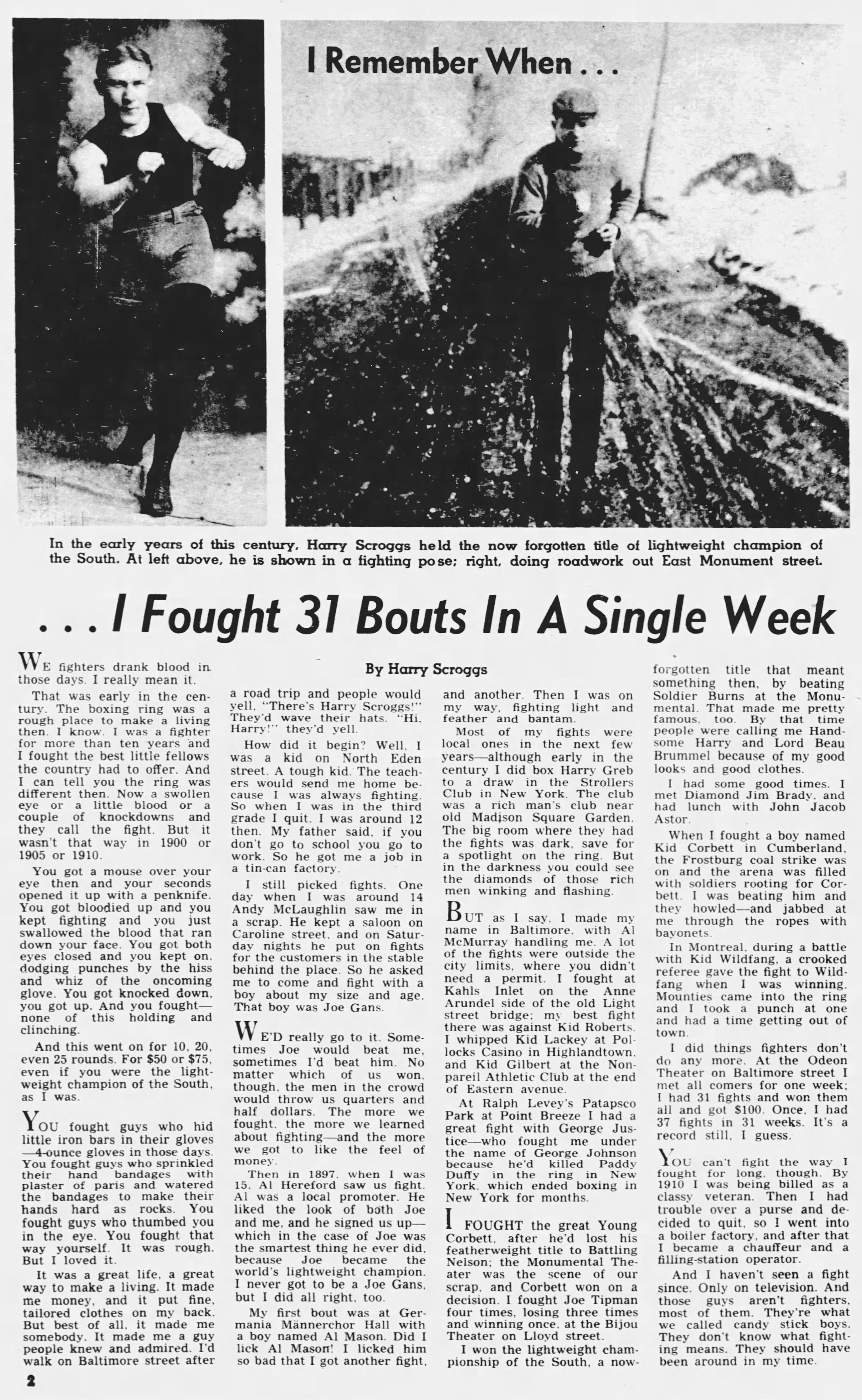 But Joe wasn’t just Joe anymore, he was Joe Gans, Lightweight World Champion of 1902. The first Baltimorean to do it. Some guys had a problem fighting Joe, him being colored and all, but Harry liked Joe’s style, and he learned from him. Joe was respectable, confident yet humble—a real athlete—not one of those guys that snuck iron bars into their 4oz gloves, or “bandaged” their hands in wet plaster of paris to knock out your teeth or break your jaw. Gans was the kind of boxer anyone serious about the fistic arts would strive to be like. Harry was no different.